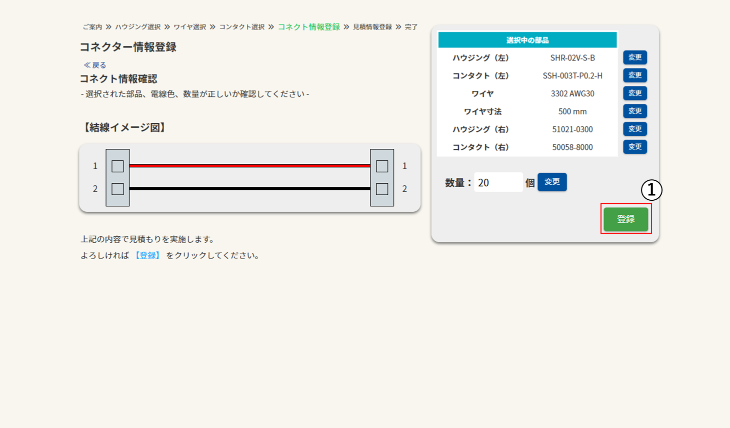 - ① 表示されている内容を確認後、登録ボタンをクリック