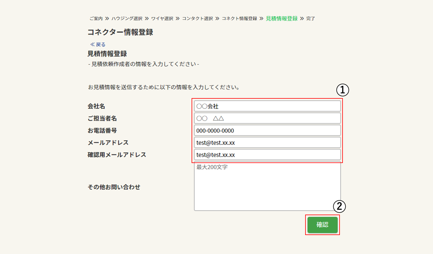 - ① 各情報を入力